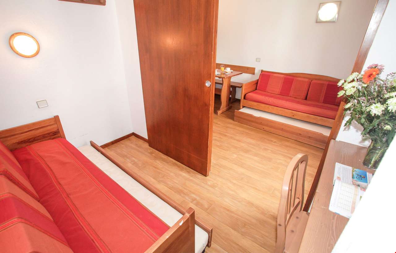 Nabízí ubytování od studií pro 4 osoby, až po apartmány pro 6 osob. Pokoje jsou vybaveny kuchyňským koutem (lednice, elektrický nebo sklokeramický sporák, mikrovlnka), koupelnou nebo sprchou s WC, obývacím pokojem s jednou nebo dvěma ložnicemi. Televize je zdarma, Wi-Fi za příplatek 25 € / týden.